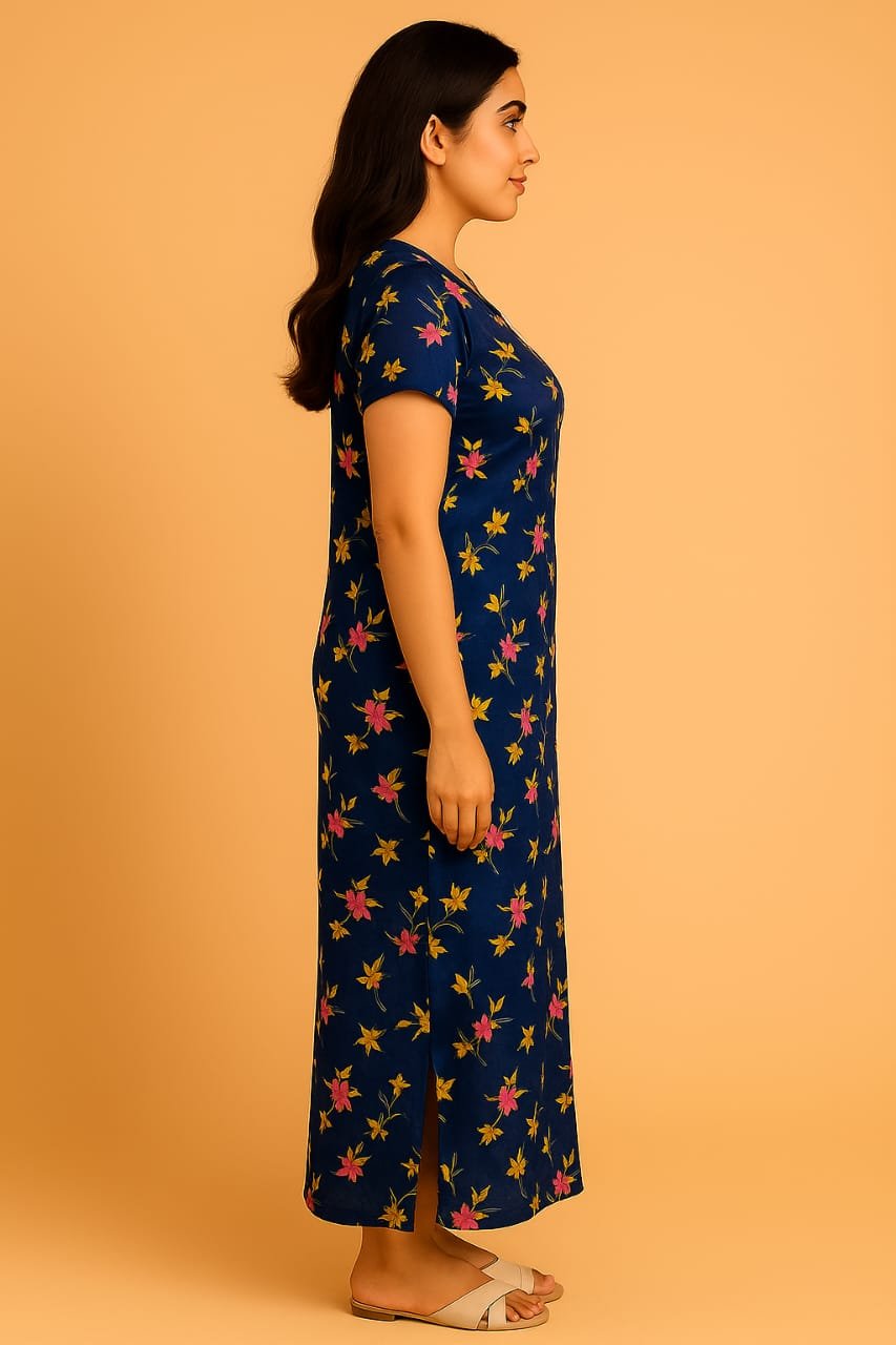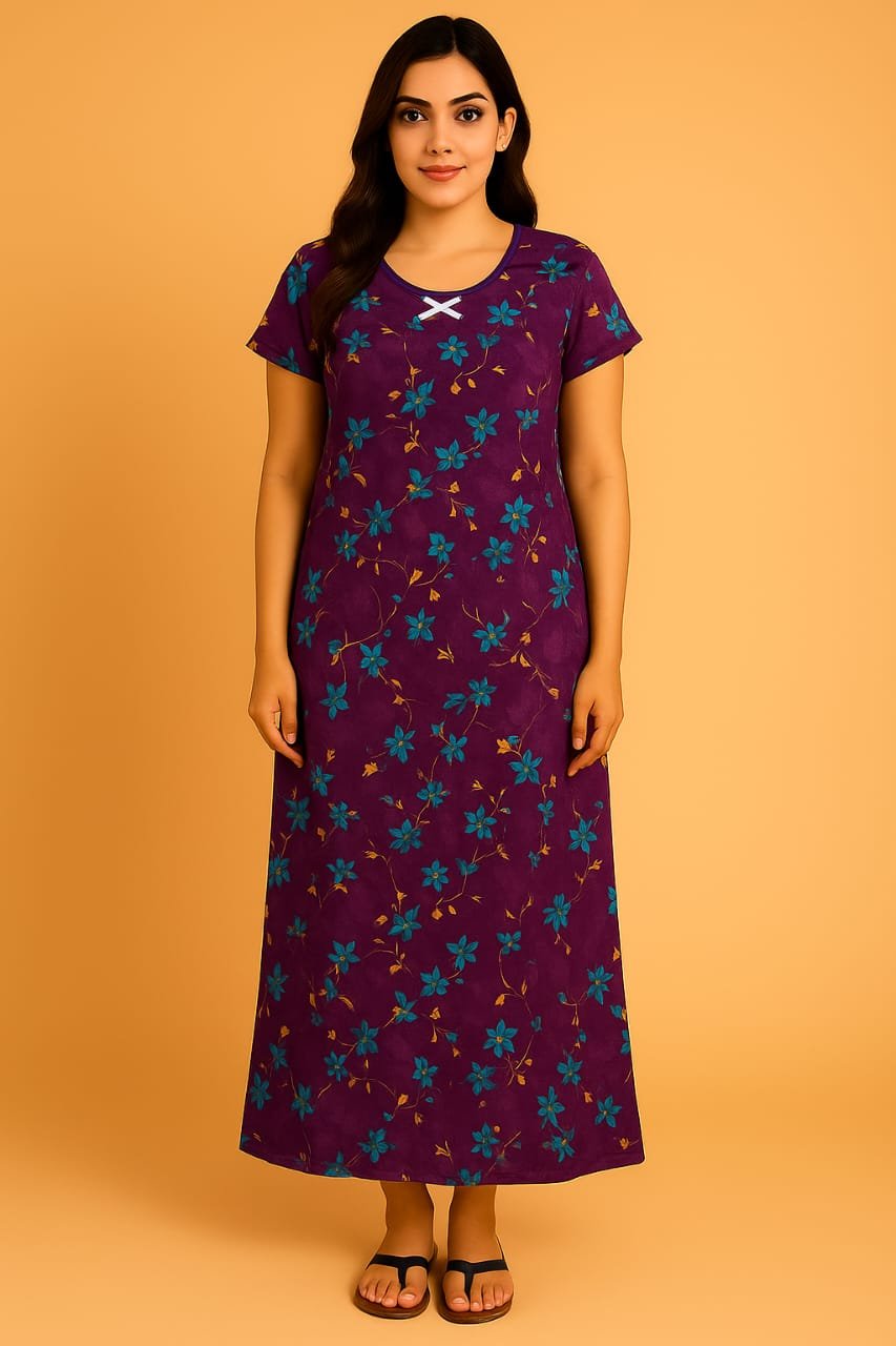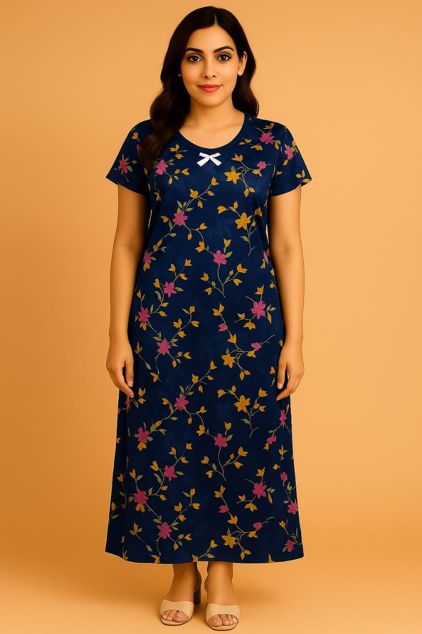 We selected this Lycra Nighty for its perfect balance of comfort and elegance. Unlike regular cotton nighties, Lycra provides stretch and durability while retaining softness. The floral print and bow accent give it a fashionable look, making it more than just sleepwear – it’s a stylish homewear essential.