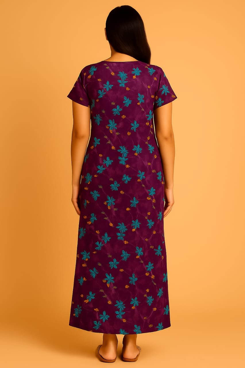 This nighty is perfect for women who prefer both comfort and style in their nightwear. Its wrinkle-resistant Lycra fabric ensures easy maintenance and long-lasting freshness.